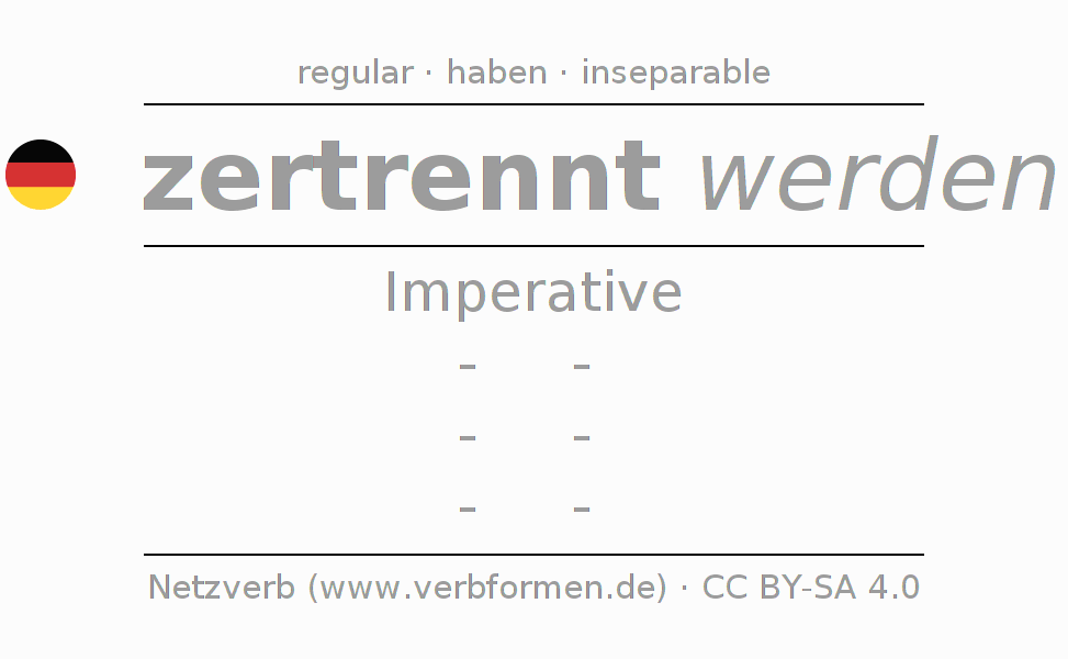 The verb zertrennen fully conjugated in all persons and numbers in the Imperative Present
