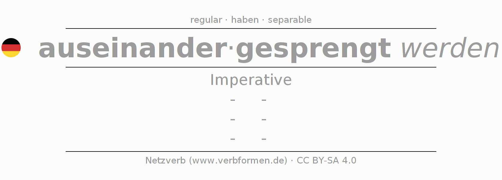 The verb auseinandersprengen (hat) fully conjugated in all persons and numbers in the Imperative Present