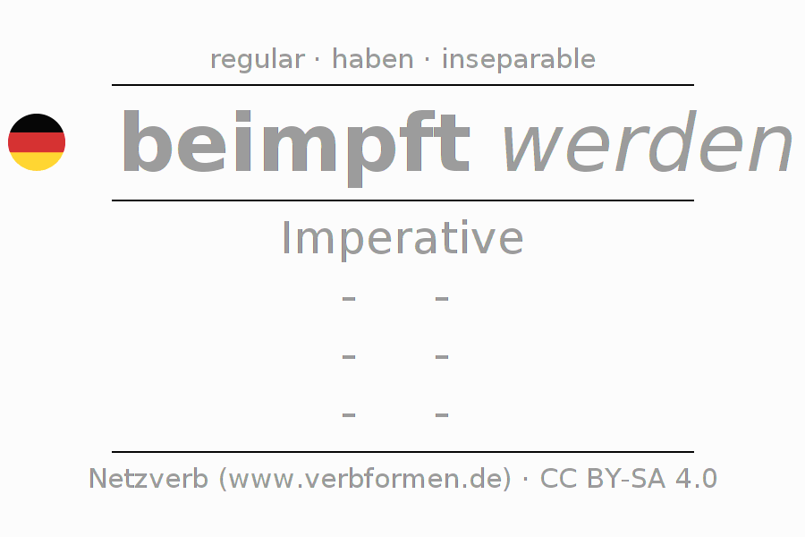 The verb beimpfen fully conjugated in all persons and numbers in the Imperative Present