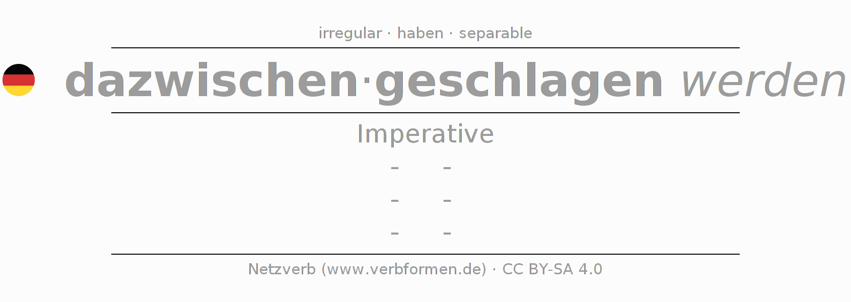 The verb dazwischenschlagen fully conjugated in all persons and numbers in the Imperative Present