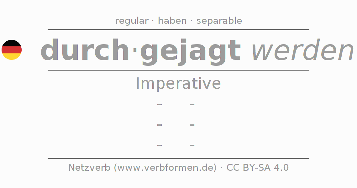 The verb durch-jagen (hat) fully conjugated in all persons and numbers in the Imperative Present