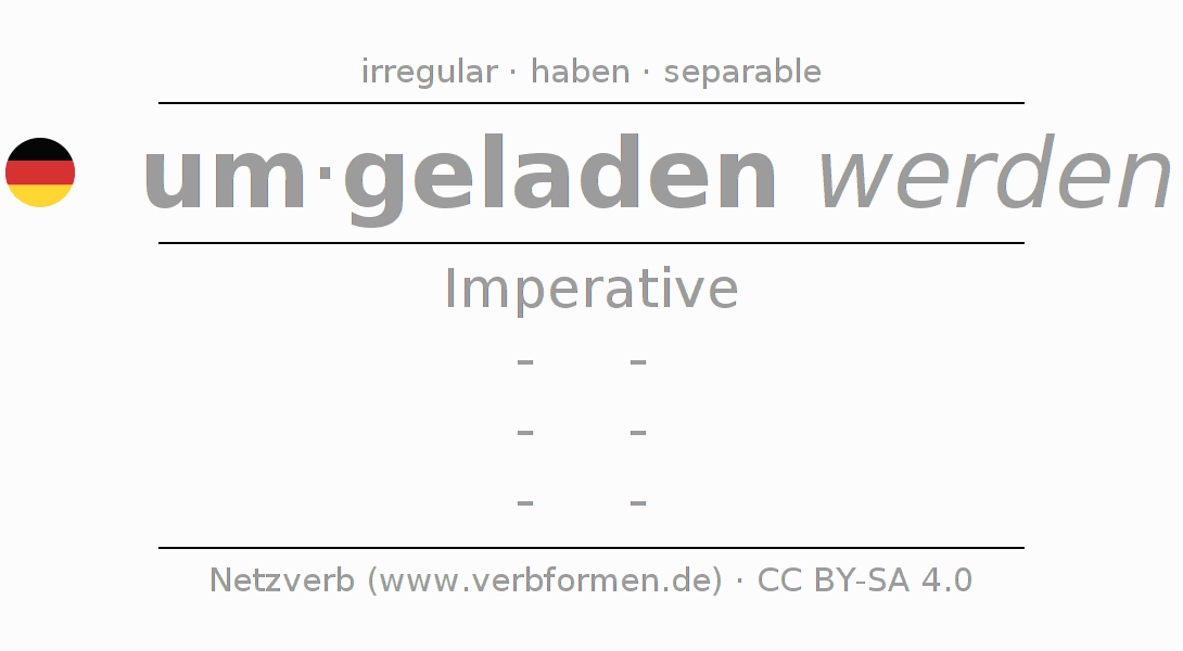 The verb umladen fully conjugated in all persons and numbers in the Imperative Present