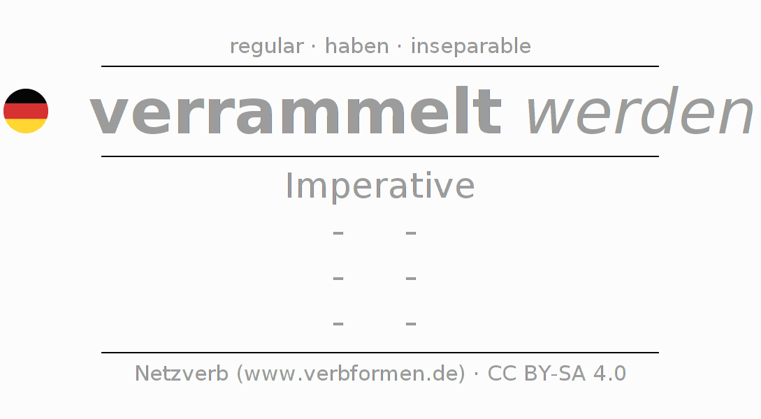 The verb verrammeln fully conjugated in all persons and numbers in the Imperative Present