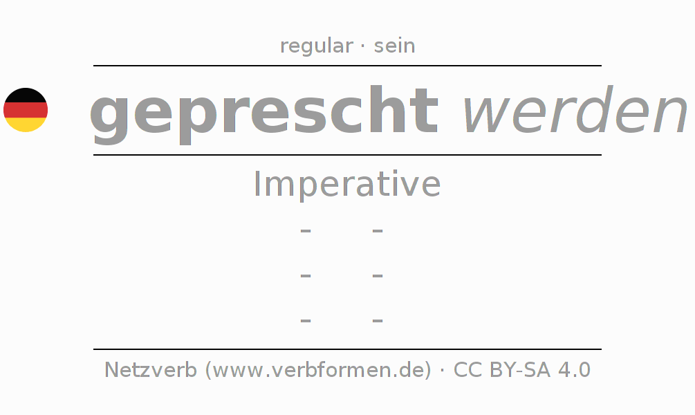 The conjugation of preschen in Imperative Present Imperative Passive is -, -, -, -.The conjugation corresponds to certain grammatical rules. Likewise the requirements for the conjugation of the simple verb forms of preschen in Imperative. Comments ☆