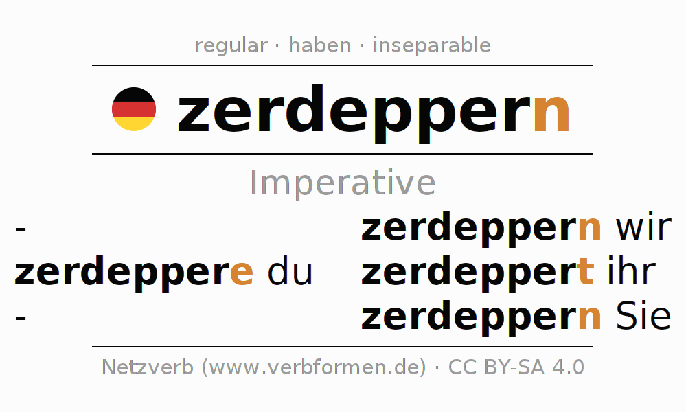 The verb zerdeppern fully conjugated in all persons and numbers in the Imperative Present