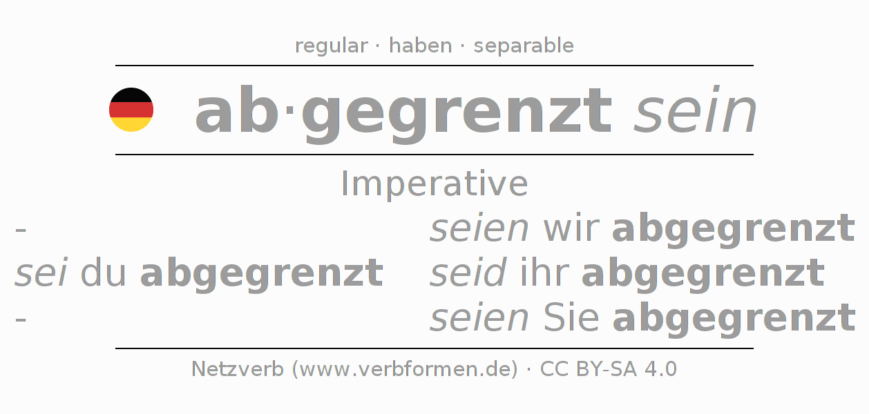 The verb abgrenzen fully conjugated in all persons and numbers in the Imperative Present