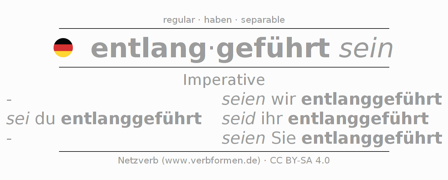 The verb entlangführen fully conjugated in all persons and numbers in the Imperative Present