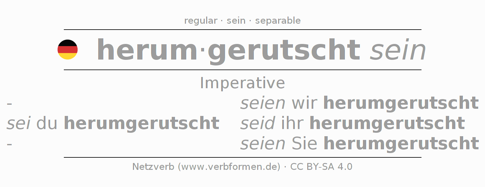 The verb herumrutschen fully conjugated in all persons and numbers in the Imperative Present