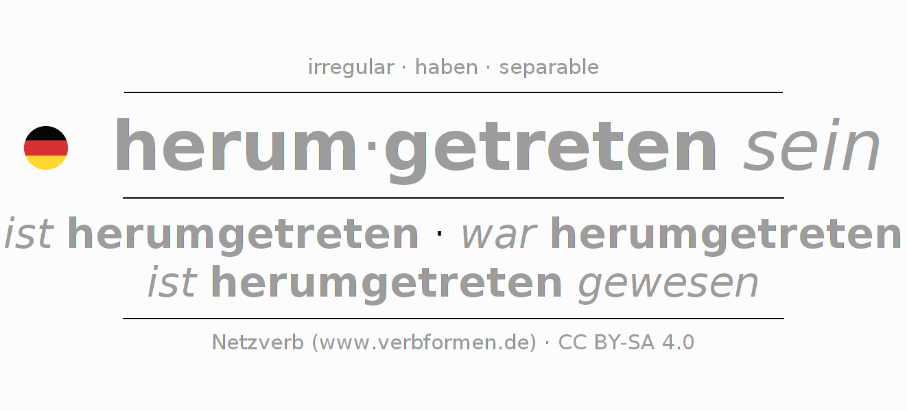The verb herumtreten (hat) fully conjugated in all persons and numbers in the Imperative Present