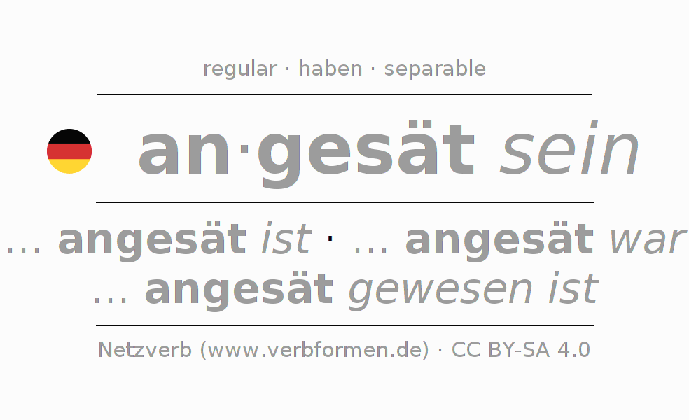 The conjugation of ansäen in Imperative Present Imperative Statal Passive is sei (du) angesät, seien wir angesät, seid (ihr) angesät, seien Sie angesät.The conjugation corresponds to certain grammatical rules. Likewise the requirements for the conjugation of the simple verb forms of ansäen in Imperative. Comments ☆