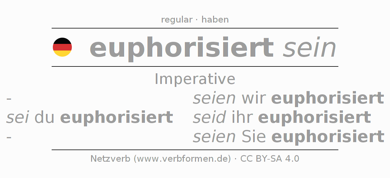 The verb euphorisieren fully conjugated in all persons and numbers in the Imperative Present