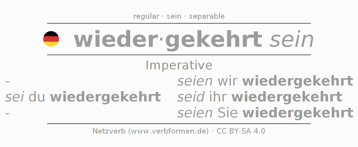 The verb wiederkehren fully conjugated in all persons and numbers in the Imperative Present