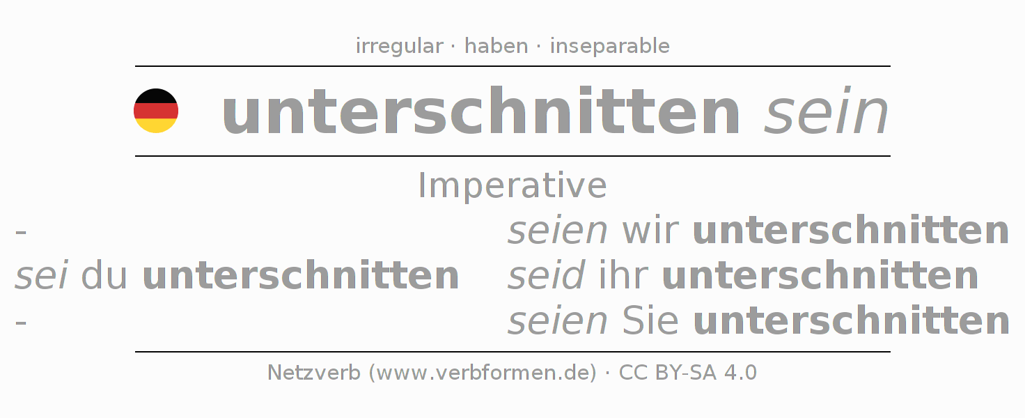 The verb unterschneiden fully conjugated in all persons and numbers in the Imperative Present