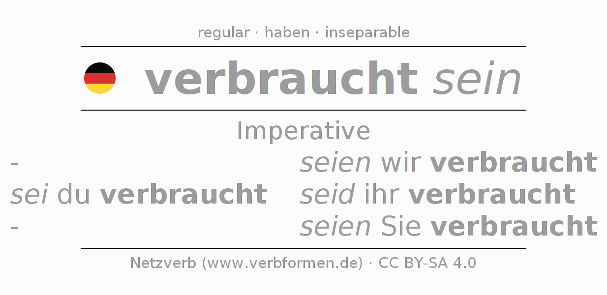 The verb verbrauchen fully conjugated in all persons and numbers in the Imperative Present