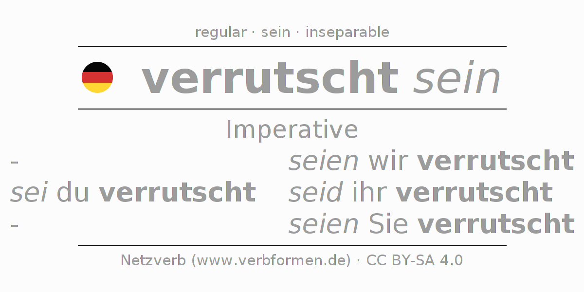 The verb verrutschen fully conjugated in all persons and numbers in the Imperative Present