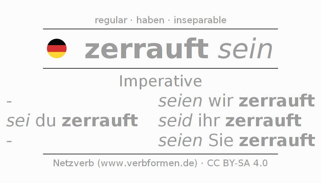 The verb zerraufen fully conjugated in all persons and numbers in the Imperative Present