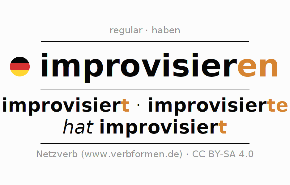 - Perfect: ich habe improvisiert, du hast improvisiert, er hat improvisiert, wir haben improvisiert, ihr habt improvisiert, sie haben improvisiert