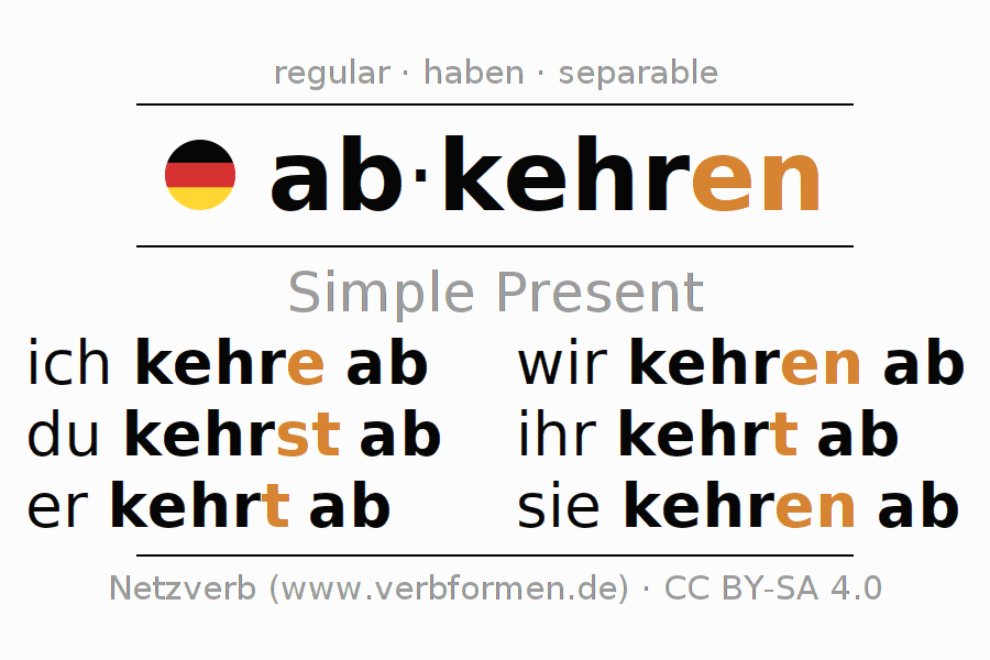 The verb abkehren fully conjugated in all persons and numbers in the Present Indicative