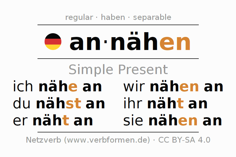 - ich nähe an (1st PersonSingular)