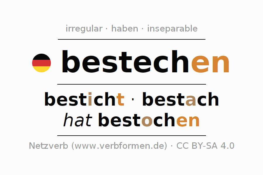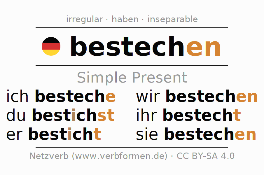 The verb bestechen fully conjugated in all persons and numbers in the Present Indicative
