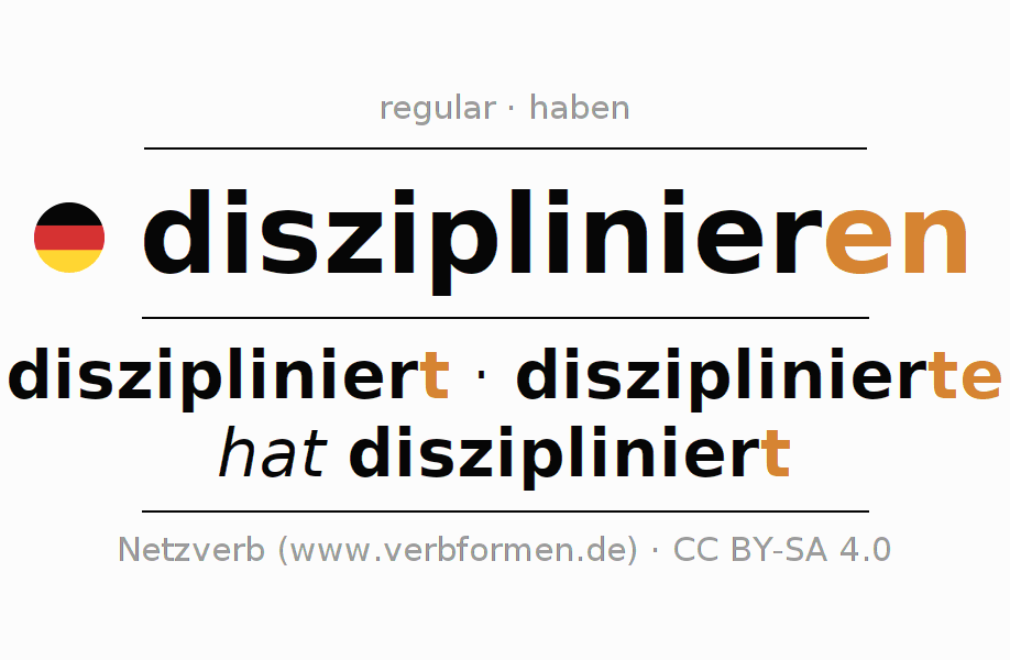 The verb disziplinieren fully conjugated in all persons and numbers in the Present Indicative