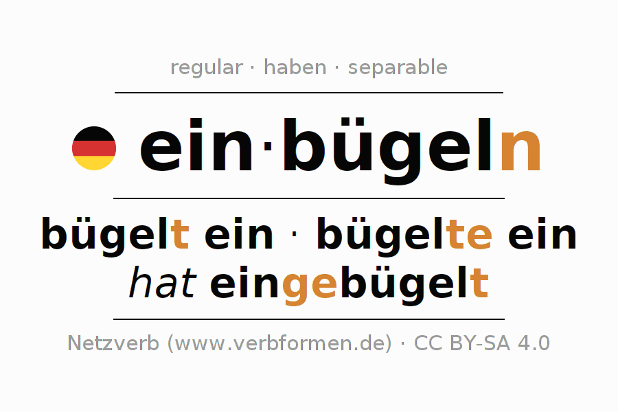 The verb einbügeln fully conjugated in all persons and numbers in the Present Indicative