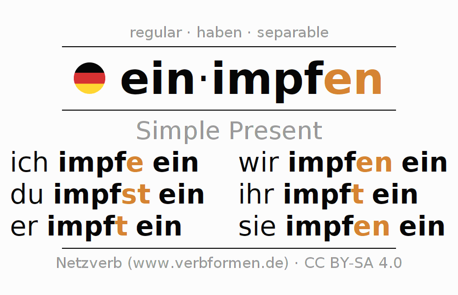 Verb forms in Present of einimpfen