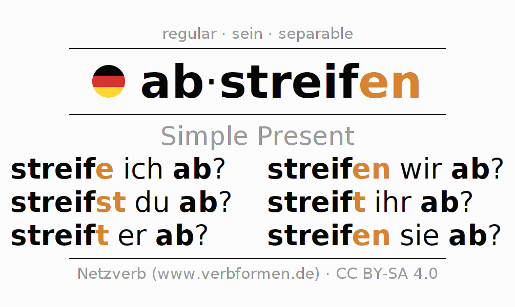 The verb abstreifen (ist) fully conjugated in all persons and numbers in the Present Indicative