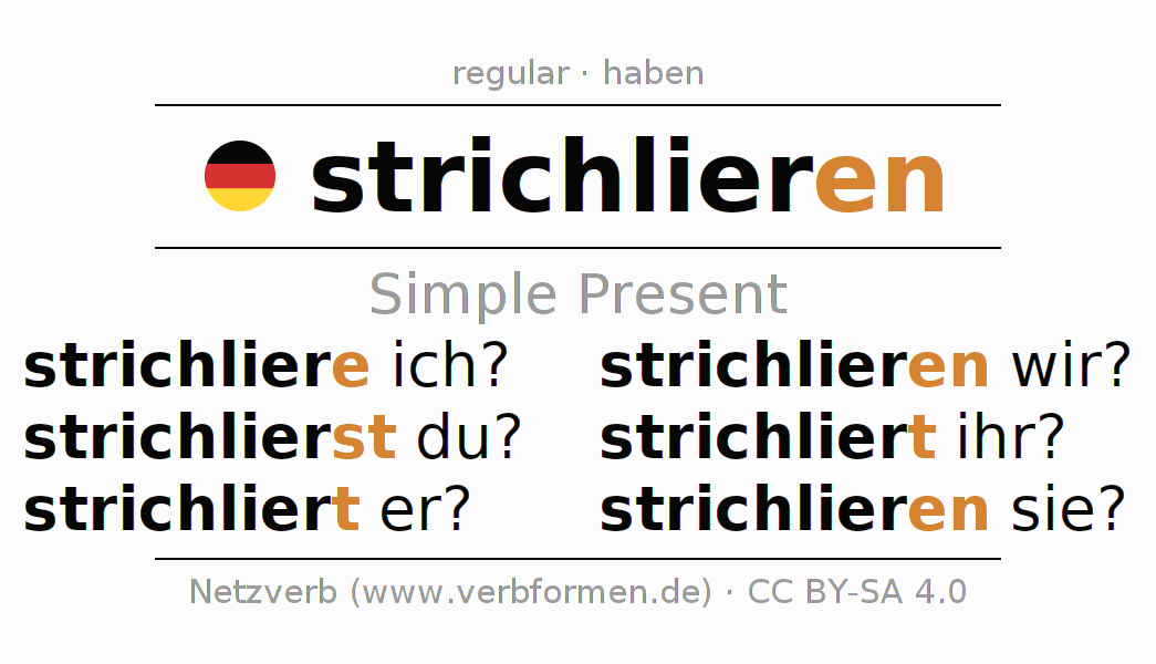 The verb strichlieren fully conjugated in all persons and numbers in the Present Indicative