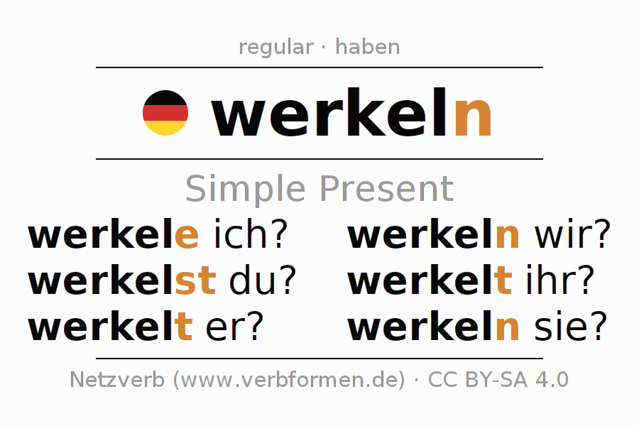 Verb forms in Present of werkeln