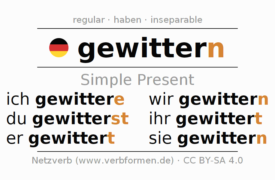 Verb forms in Present of gewittern