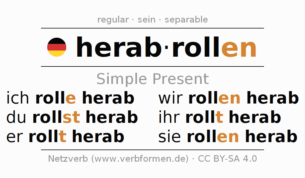 Verb forms in Present of herabrollen