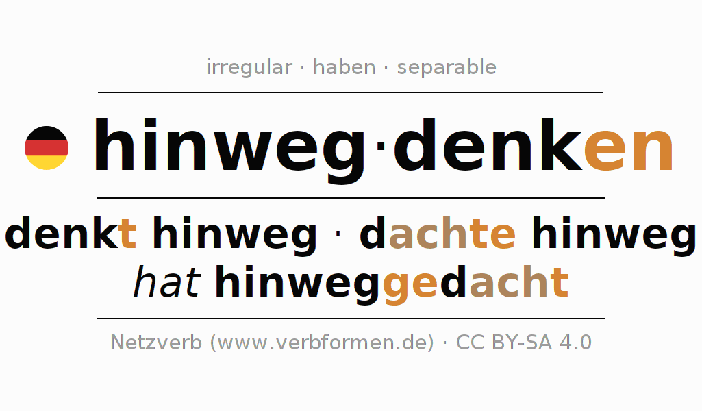 The verb hinwegdenken fully conjugated in all persons and numbers in the Present Indicative