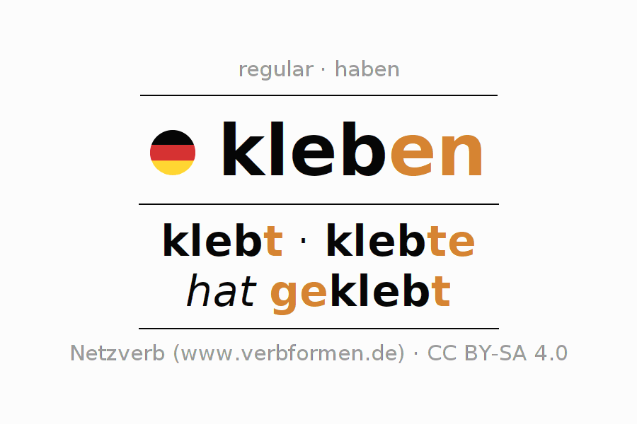 The verb kleben fully conjugated in all persons and numbers in the Present Indicative