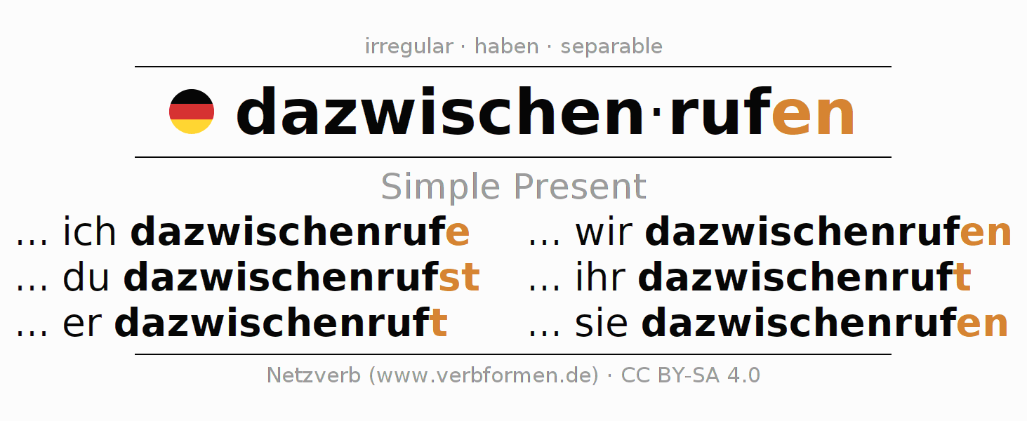 Verb forms in Present of dazwischenrufen