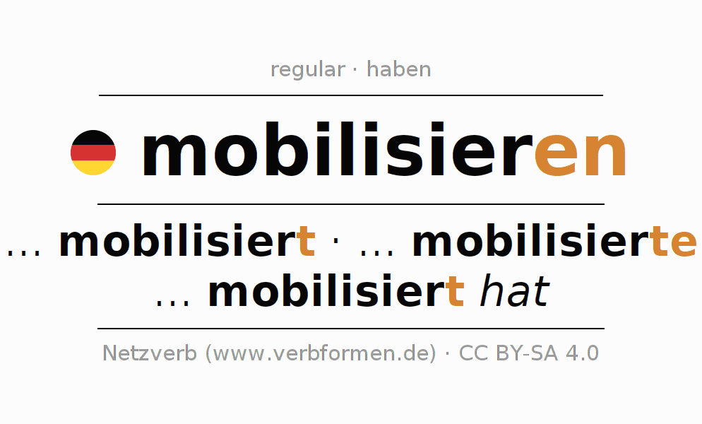The verb mobilisieren fully conjugated in all persons and numbers in the Present Indicative