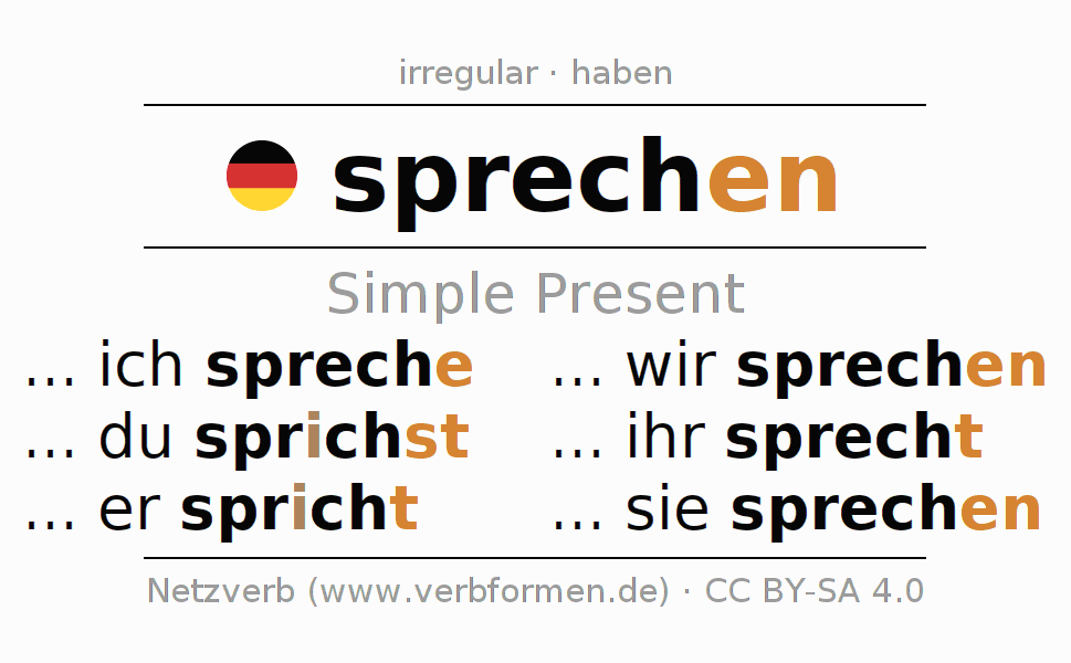 The verb sprechen fully conjugated in all persons and numbers in the Present Indicative