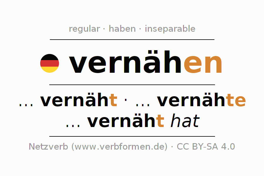 The verb vernähen fully conjugated in all persons and numbers in the Present Indicative