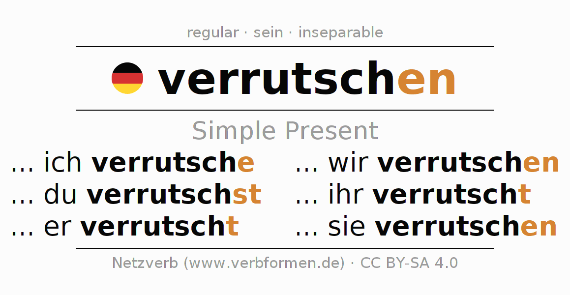 The verb verrutschen fully conjugated in all persons and numbers in the Present Indicative