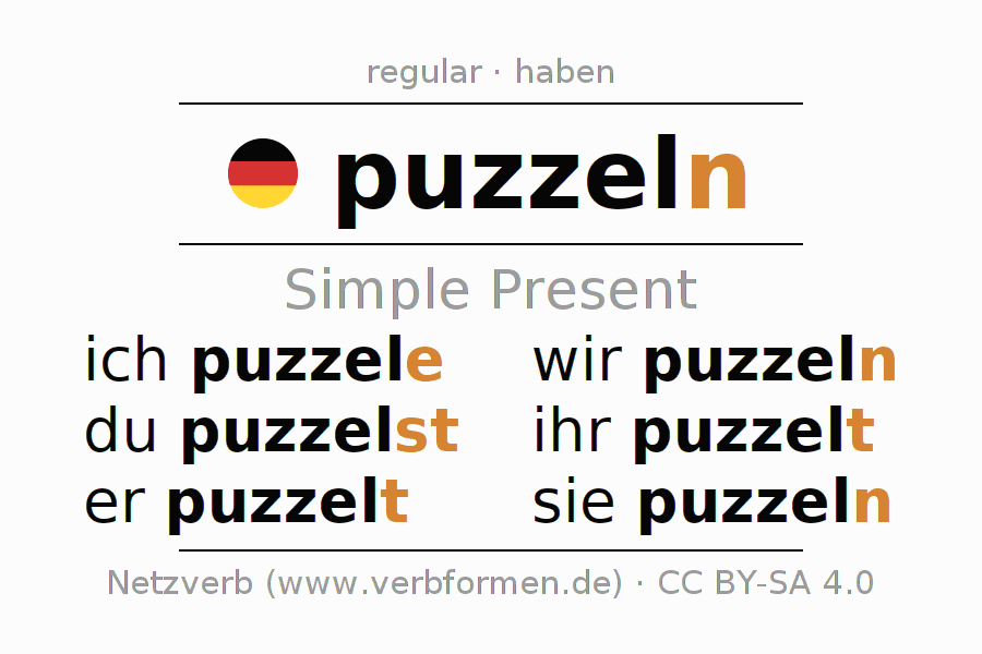 The verb puzzeln fully conjugated in all persons and numbers in the Present Indicative