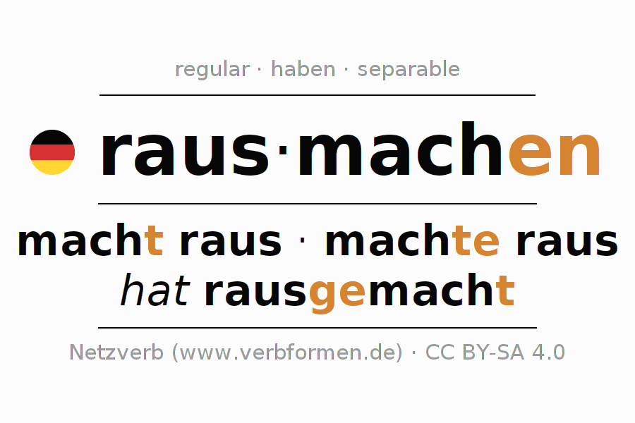 The verb rausmachen fully conjugated in all persons and numbers in the Present Indicative