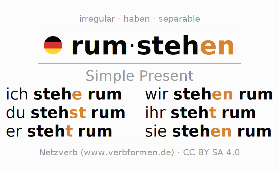 The verb rumstehen fully conjugated in all persons and numbers in the Present Indicative