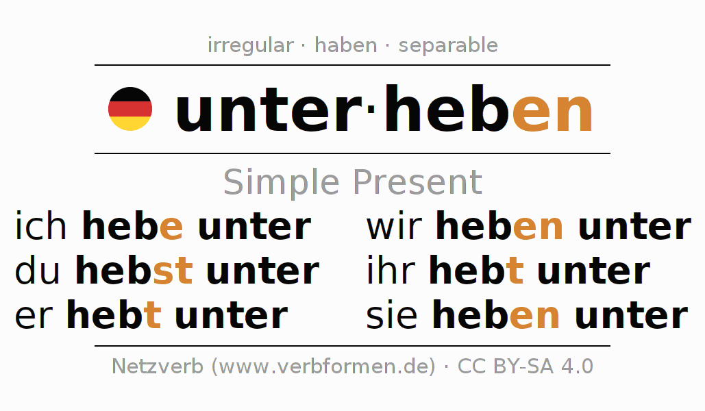 The verb unterheben fully conjugated in all persons and numbers in the Present Indicative