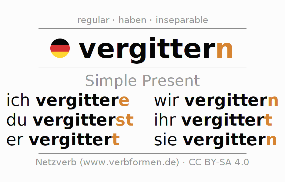 The verb vergittern fully conjugated in all persons and numbers in the Present Indicative