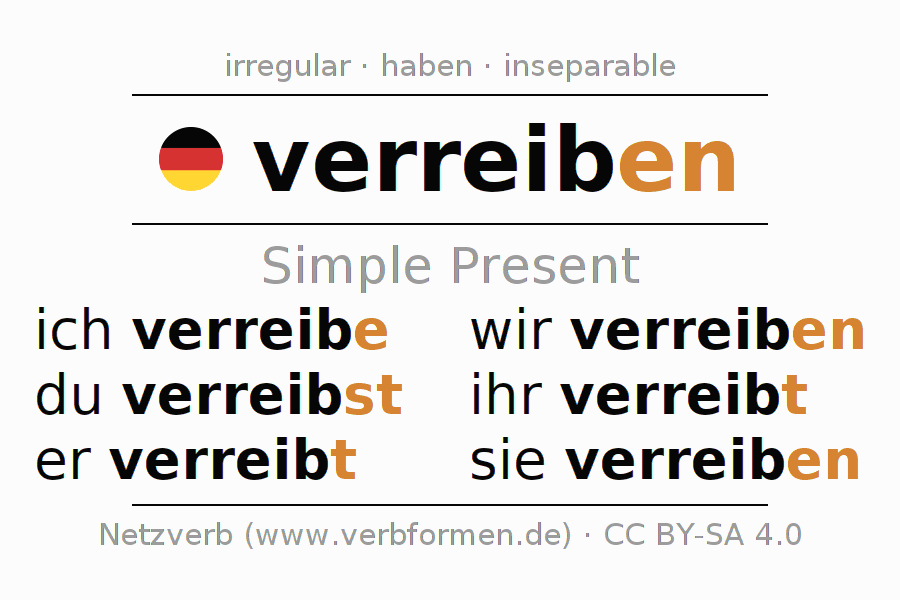 The verb verreiben fully conjugated in all persons and numbers in the Present Indicative