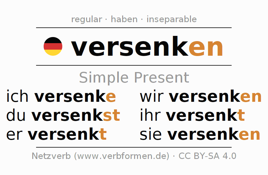 The verb versenken fully conjugated in all persons and numbers in the Present Indicative
