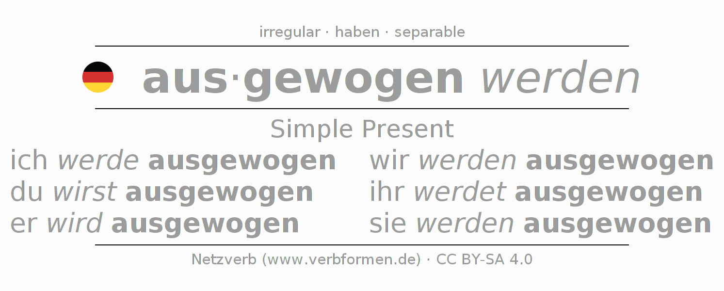 The verb auswiegen fully conjugated in all persons and numbers in the Present Indicative