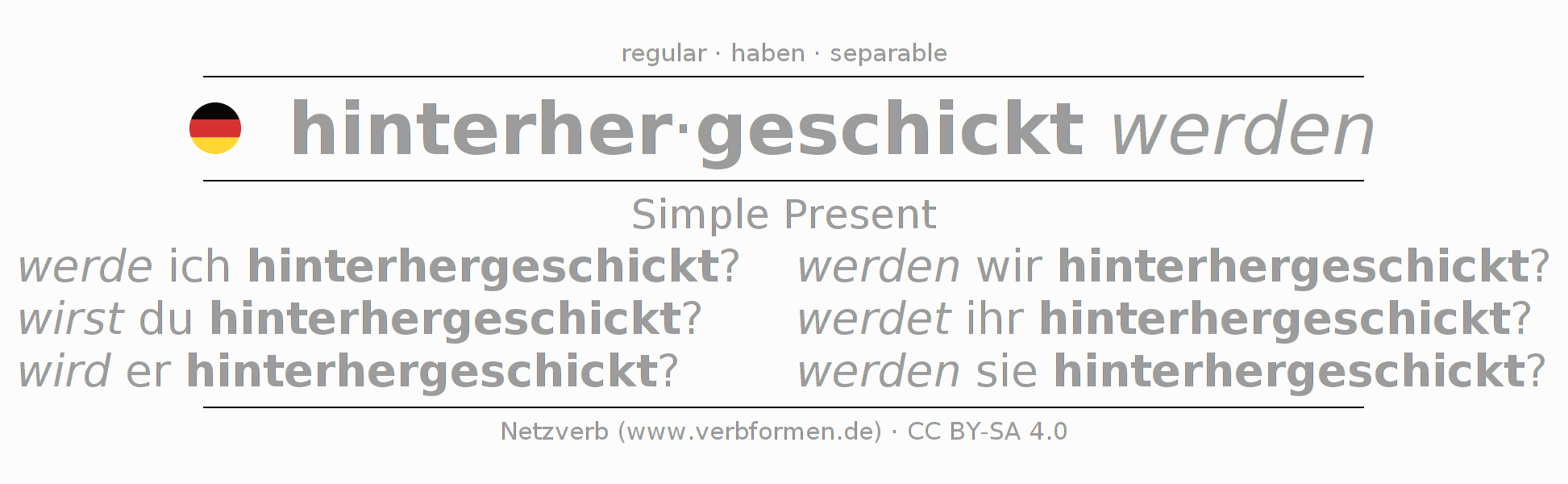 Present of German verb hinterherschicken 〈Passive〉 〈Interrogative〉