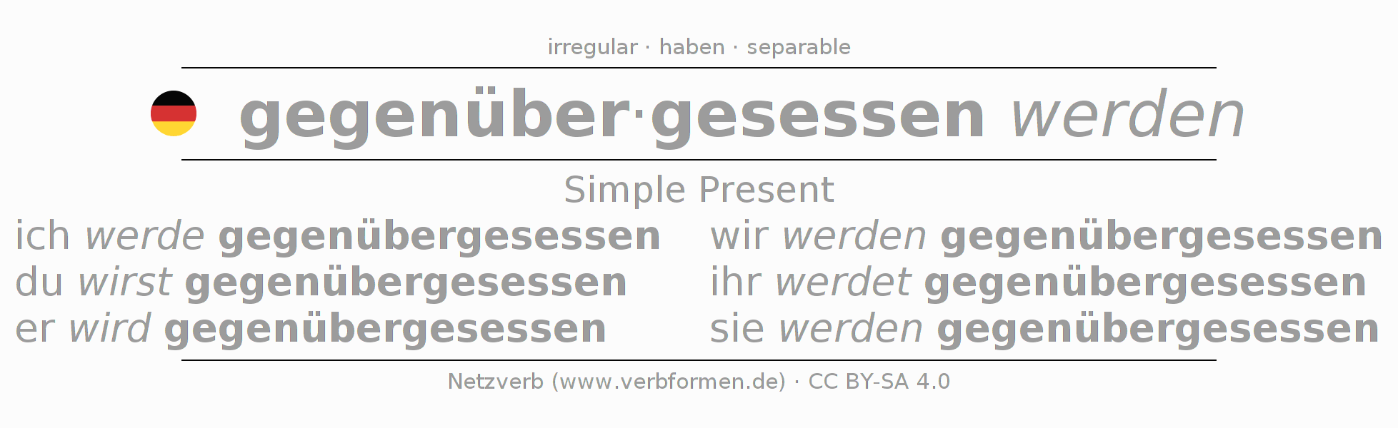 The verb gegenübersitzen (hat) fully conjugated in all persons and numbers in the Present Indicative