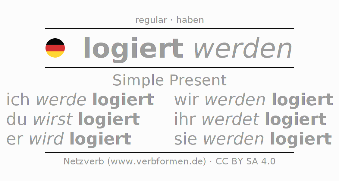 - ich werde logiert (1st PersonSingular)